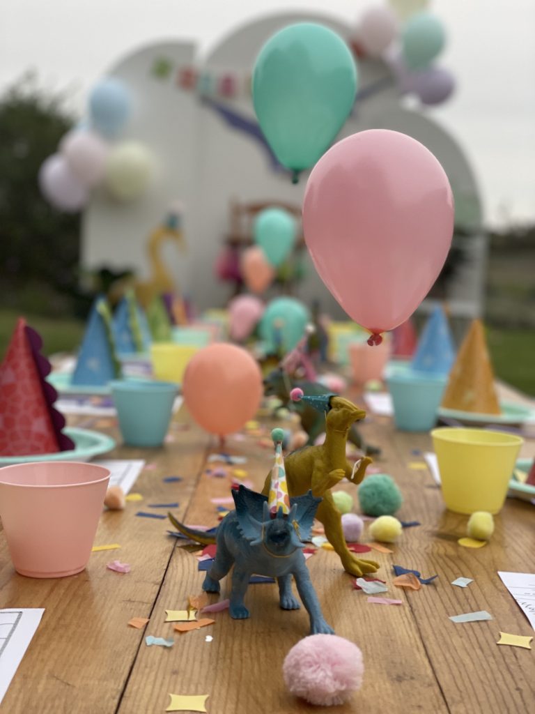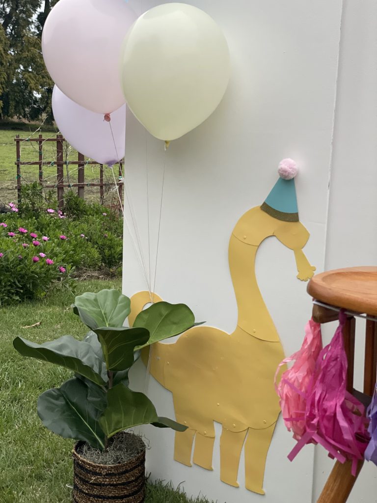 My essentials were booked and I couldn’t wait to purchase all the fun decorations! I shopped at my local Party City, Dollar Tree, Walmart and of course Amazon and Etsy to curate the perfect collection of pastel dinosaur party decor. The end result was perfect!Â