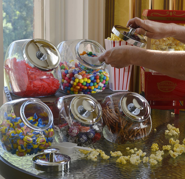 - Anchor Hocking Glass Penny Jar w/chrome lid 1 gal $18.00 ea.