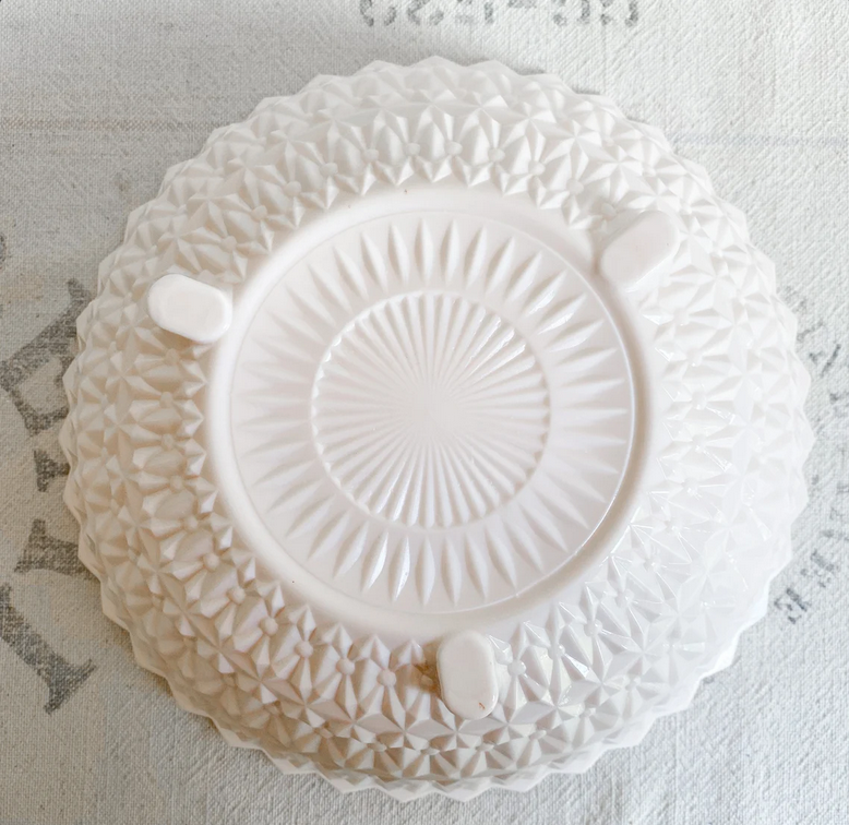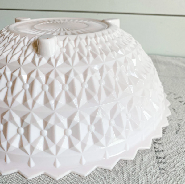 Jeanette Pink Milk Glass Round Serving Bowl “Buttons & Bows” pattern. $75.00