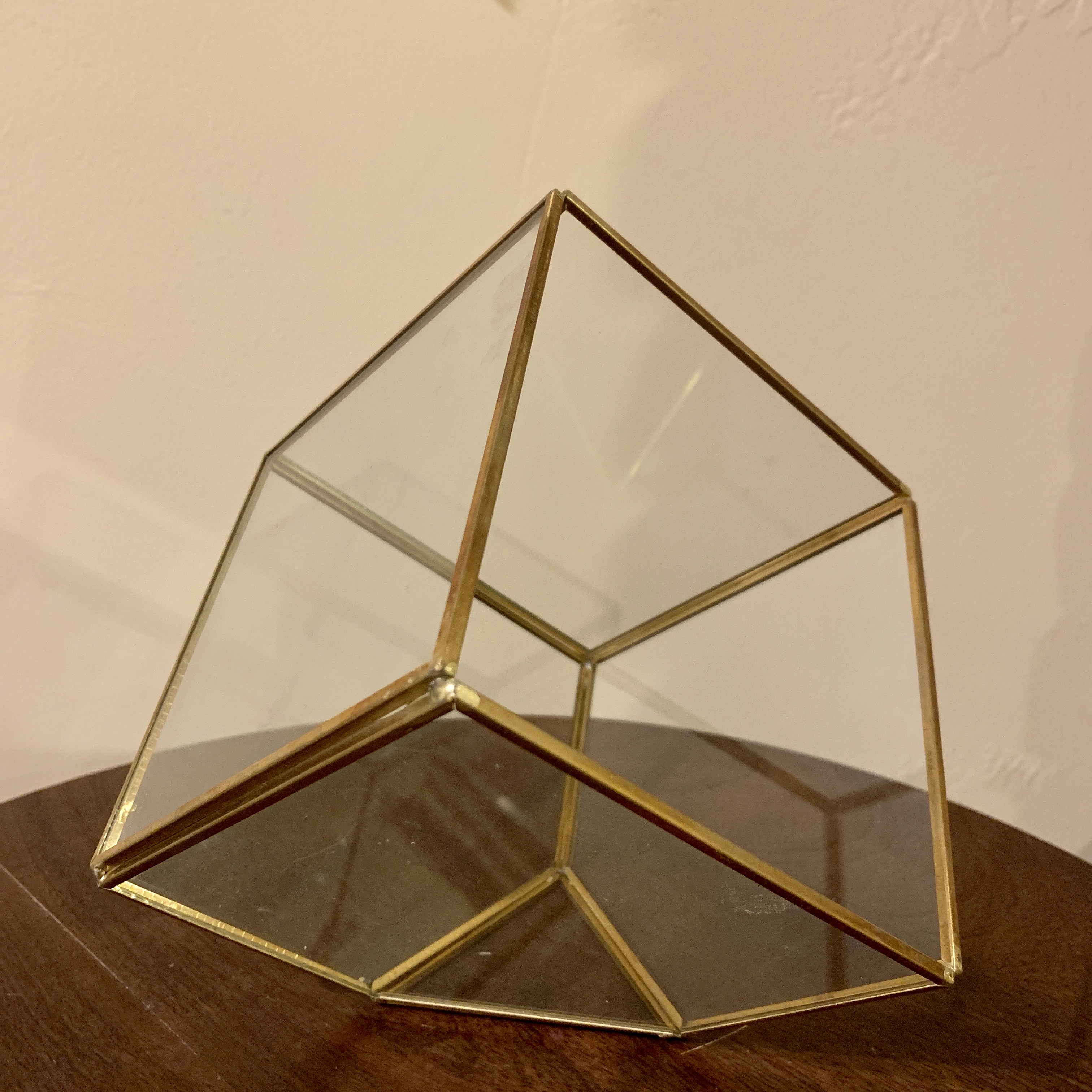 Glass terrainium with gold edges, perfect for  unique centerpieces. Fill with flowers, succulents, or air plants for a gorgeous decorative piece.