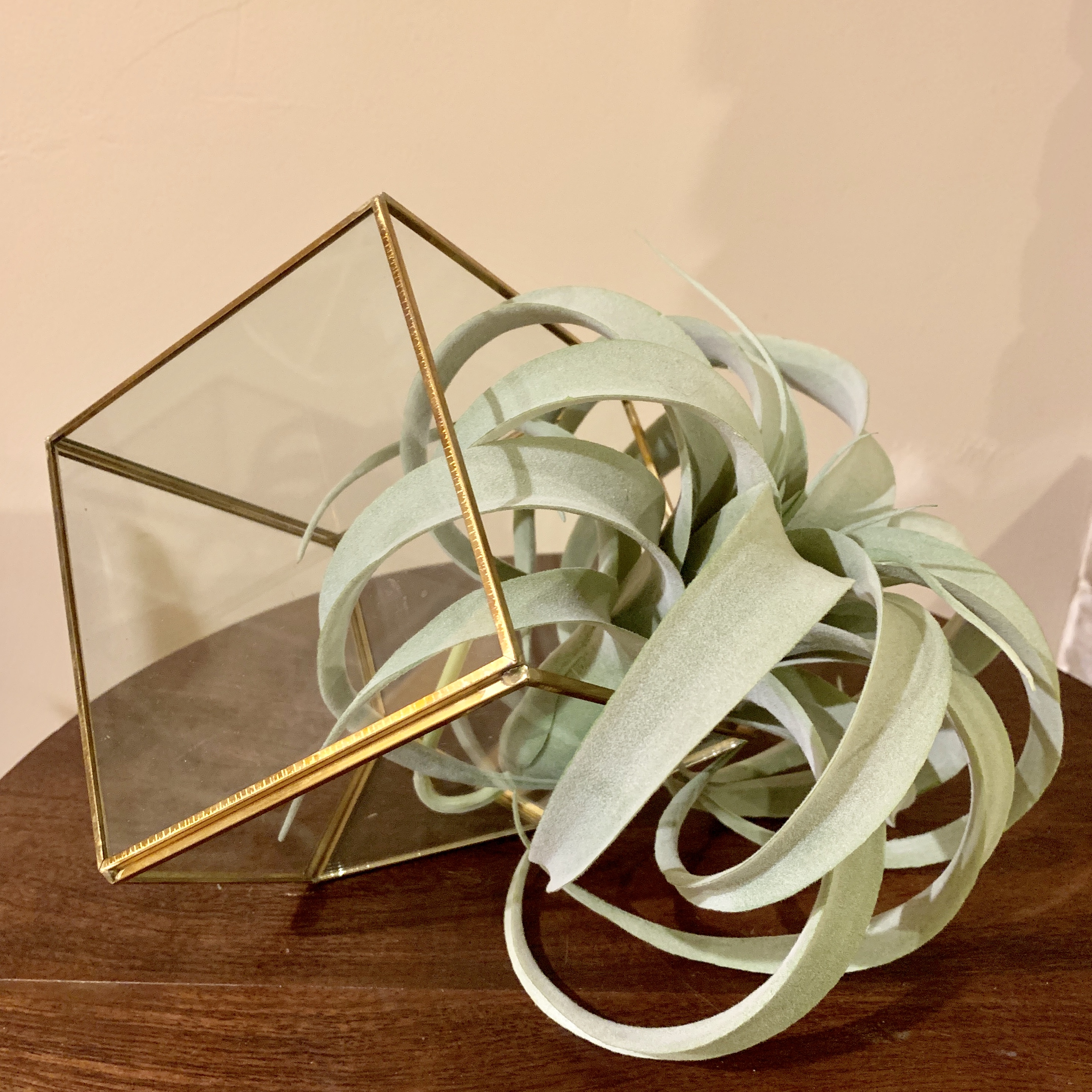 Glass terrainium with gold edges, perfect for unique centerpieces. Fill with Flowers, succulents, or air plants for a gorgeous statement piece!
