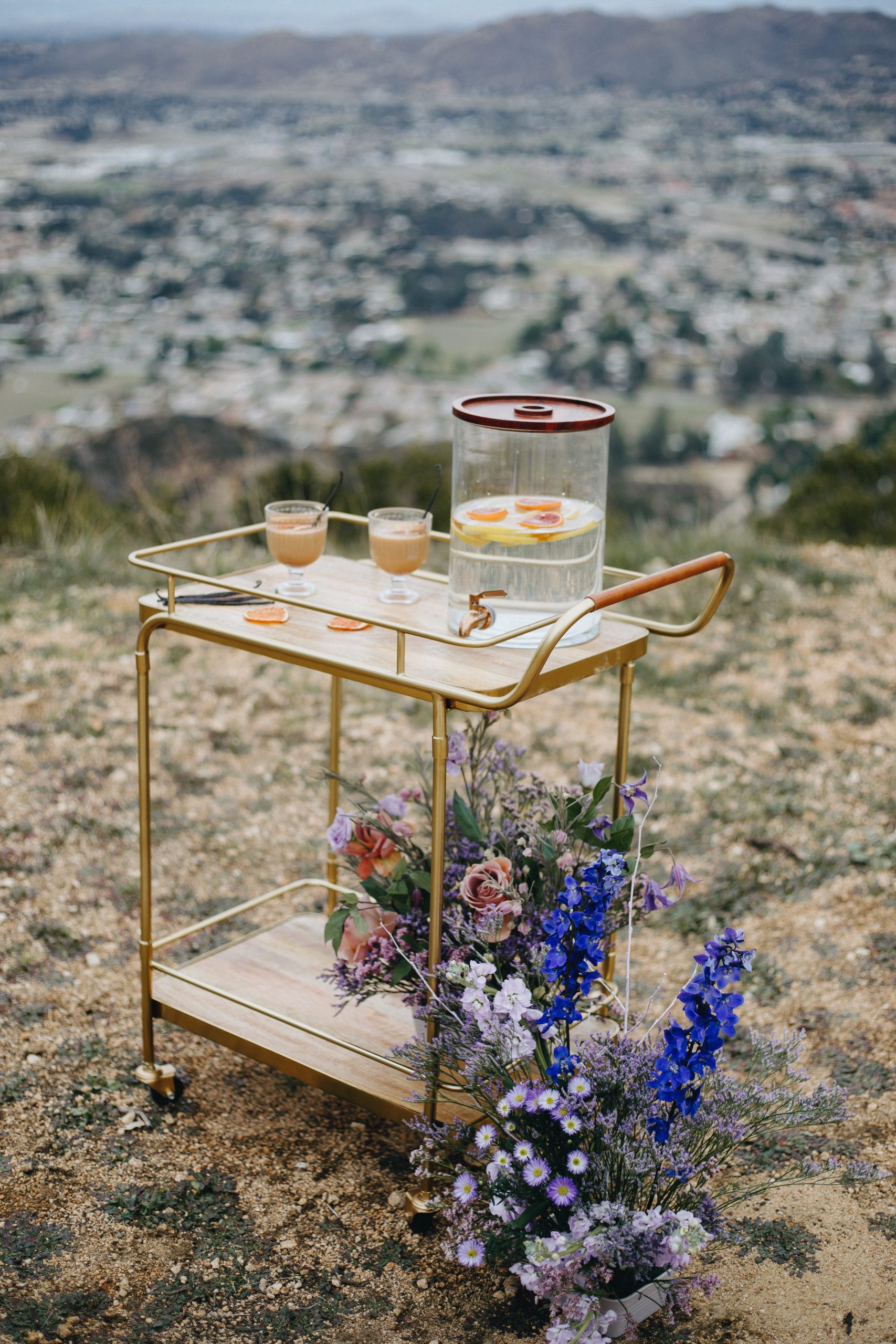 This beverage dispenser is perfect for any event! The copper details add a rustic design.