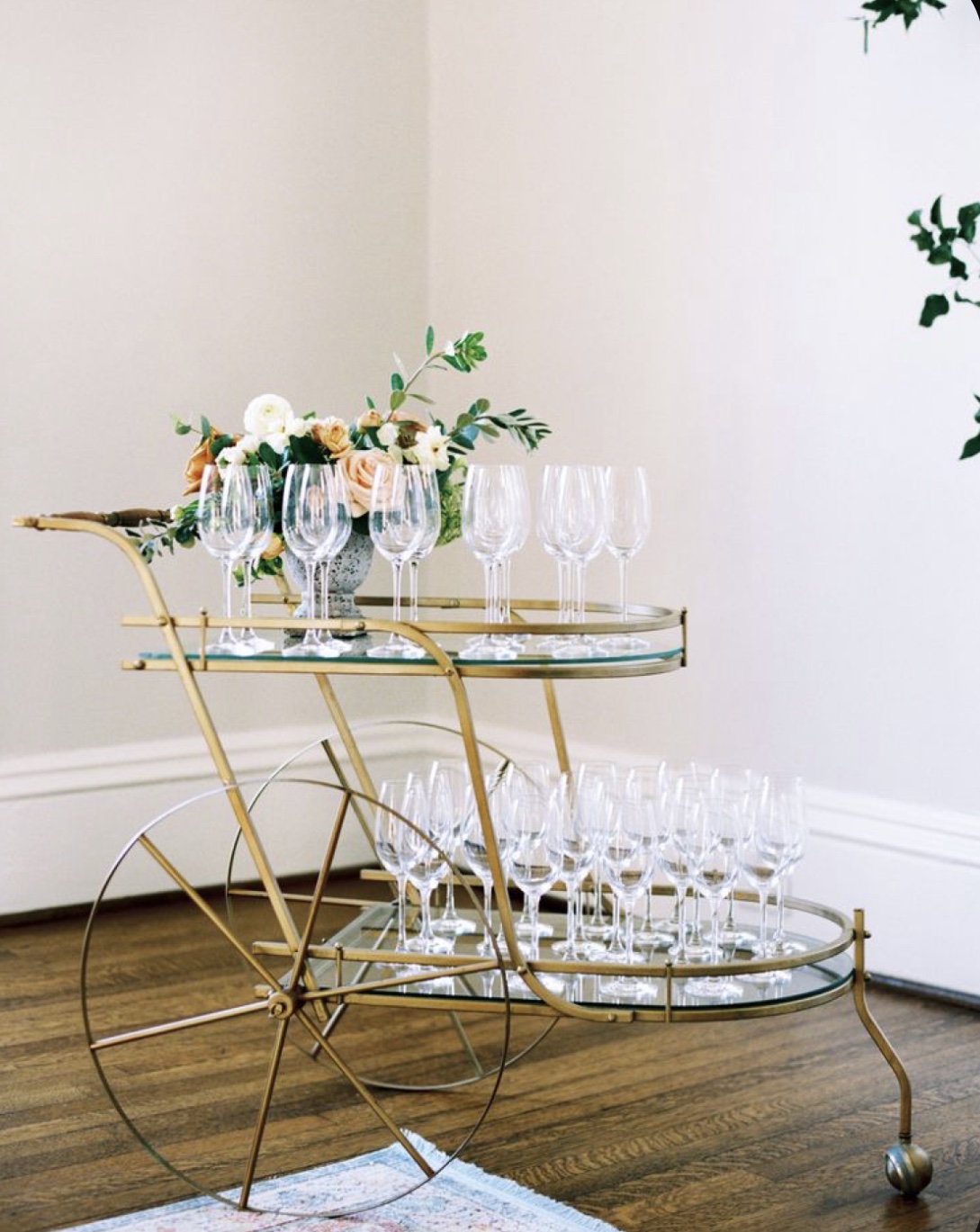 - Create a fuller tablescape look by adding a wine glass and a champagne flute together.