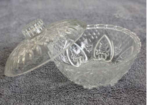 Clear, optimized for table use, formal look, approx 4.2 inches in diameter, durable crystal.