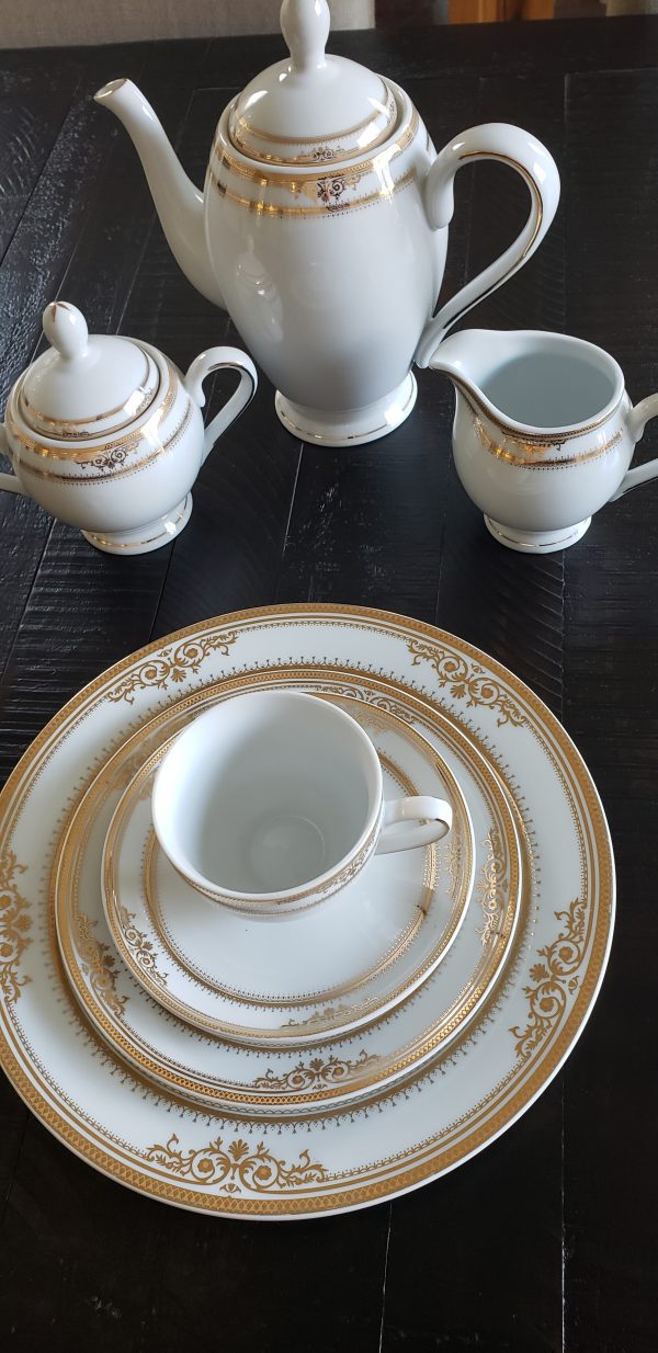 Stylish modern design sets a beautiful landscape at any table. Offered is vintage GNA fine porcelain China.