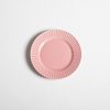 This pink plate can add color and detail to any table setting.