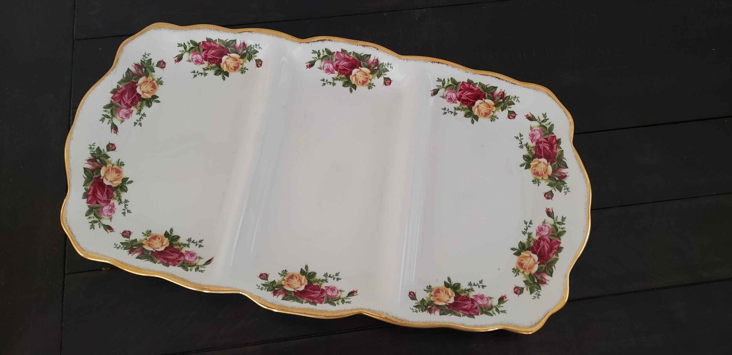 Impeccable rose pattern accross plate. Trimmed in 24k gold.