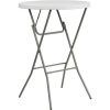 - With an overall height of 44”, this folding cocktail table is the next great solution for temporary seating or dining during your next event. The 32” cocktail table top provides more than enough space to rest a plate, glasses or just an elbow while your guests converse and enjoy the party.