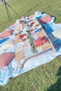 - Tables are custom built with pressure treated pine wood with a polyurethane varnish