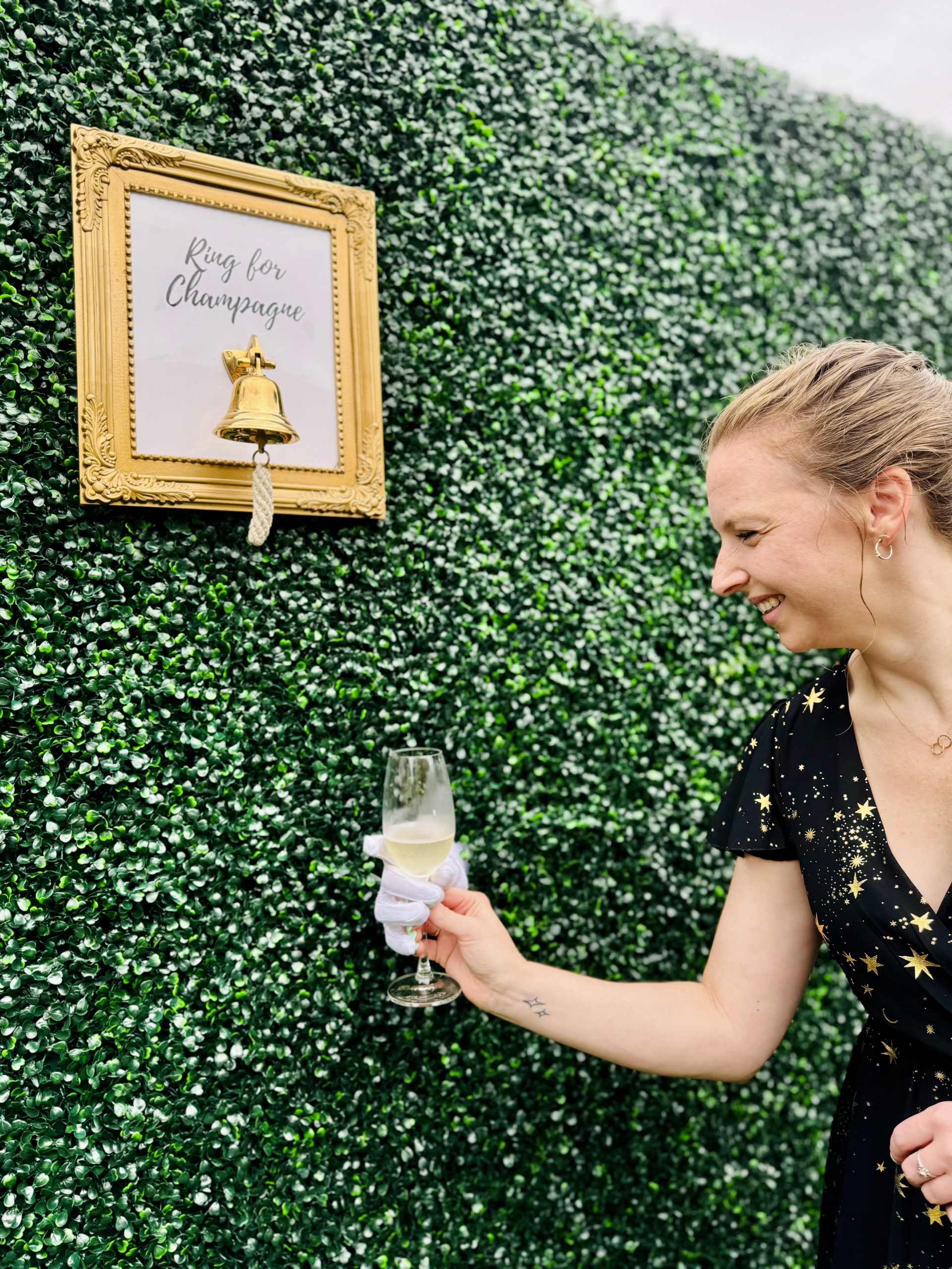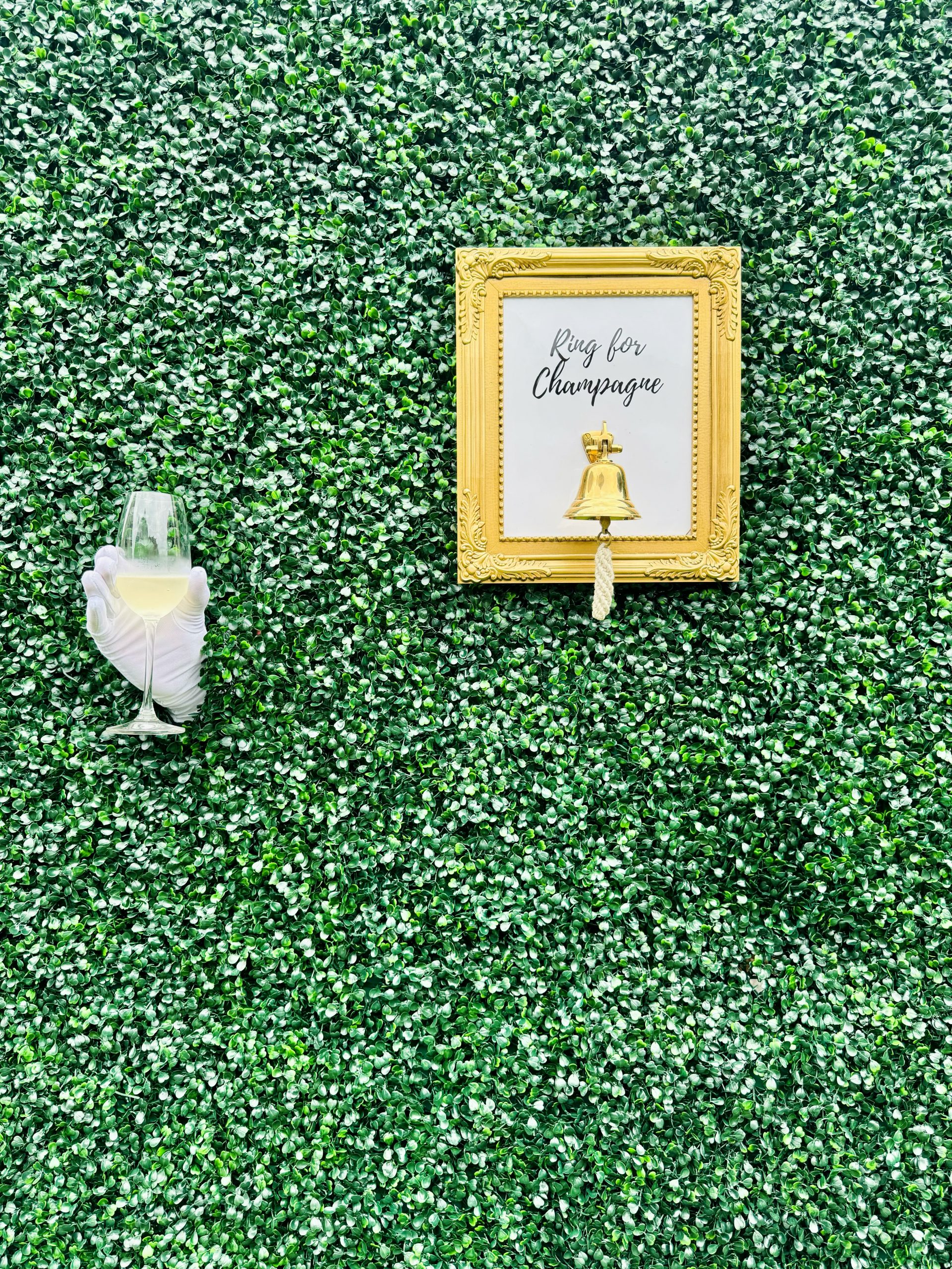 Elevate your upcoming event with M.E. Productions interactive living champagne wall. This alluring white glove service enhances your guests experience as they are served your drink/treat of choice through picturesque greenery at the ring of a bell.