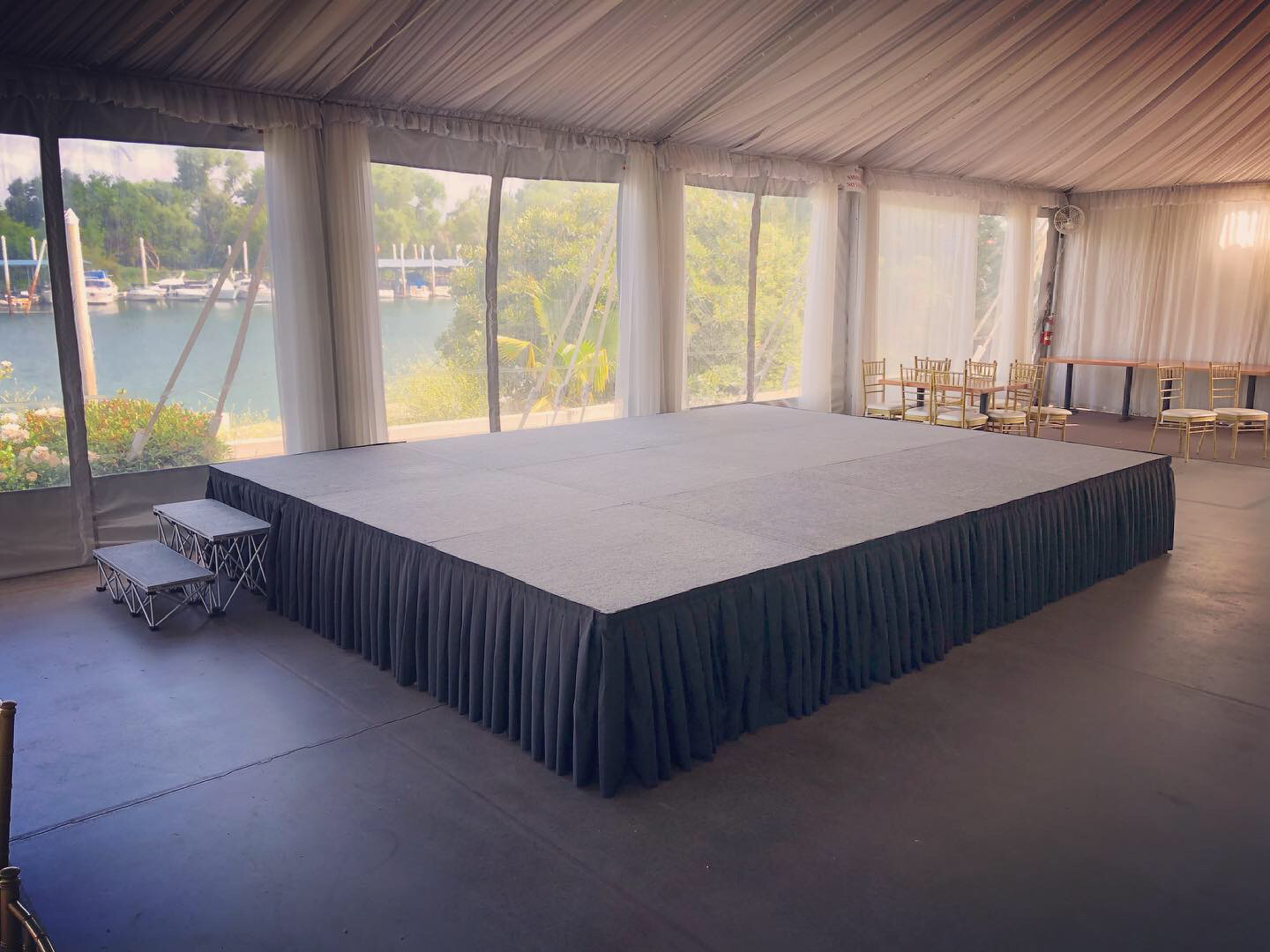 Stage & Dancefloor available for Rent for all events (Church, Birthdays, weddings, receptions, schools, offices, backyard events, halls, Corporate Events). Professionally Carpeted & Aluminum All Weather Stage