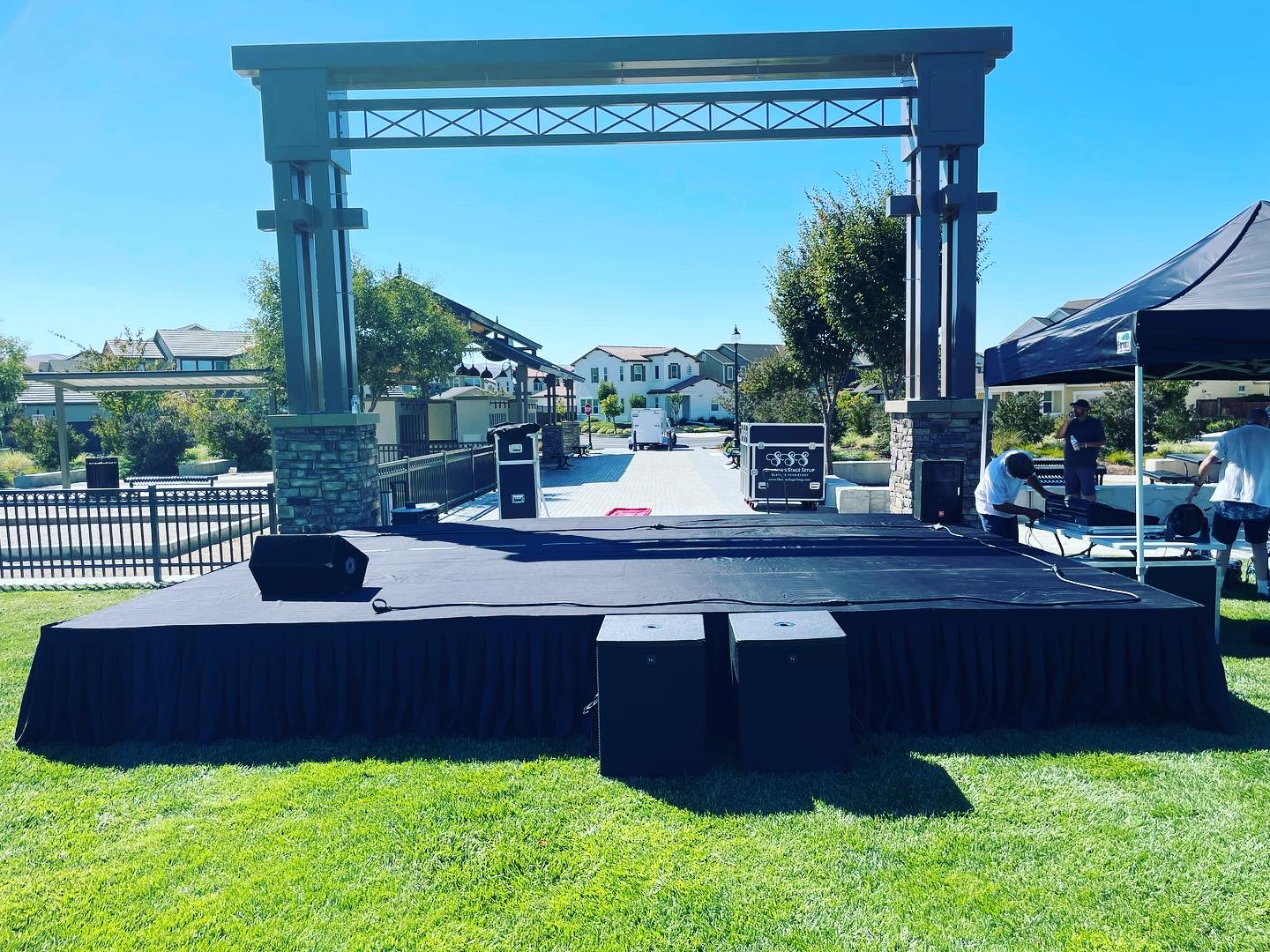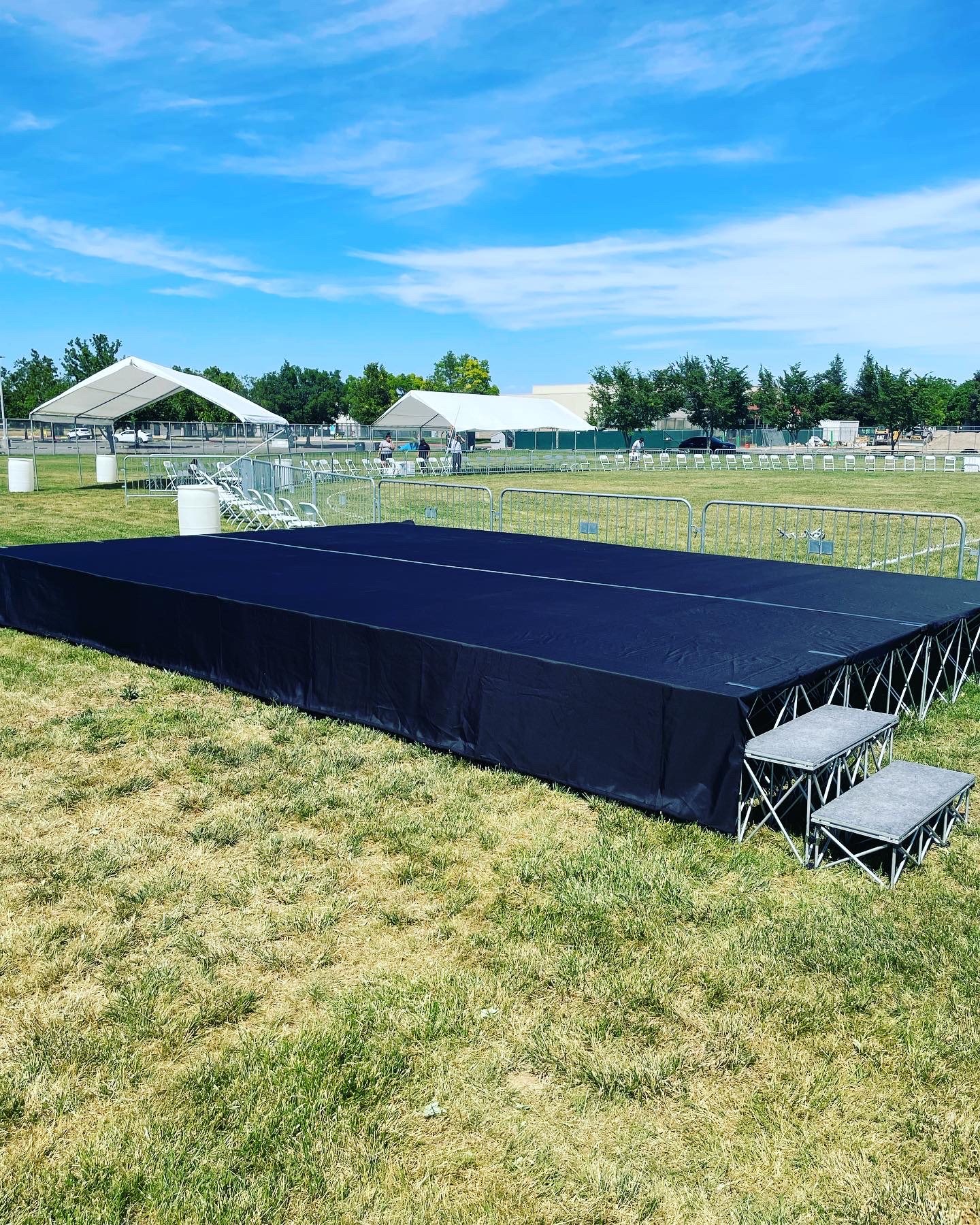 We setup stages for all events & any occasions. Stages can be setup any size from 8ft x 8ft all the way up to 32ft x 32ft.