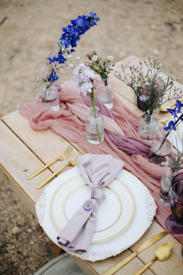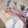 A textured table runner that adds a pop of color to any table setup. Great for weddings at sweetheart table and boho picnic setups!
