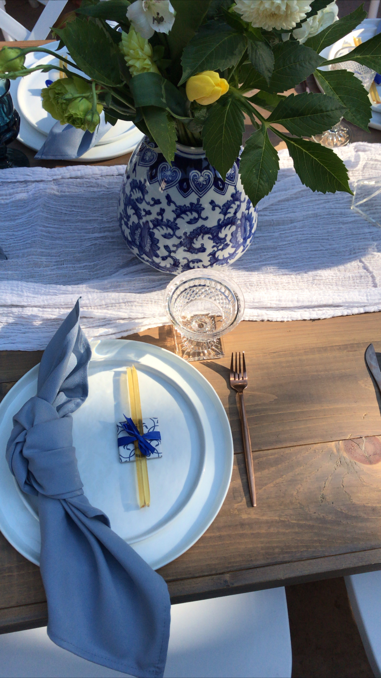• Linens – Washing is not required or recommended, but please be kind to them. Shake out all food, crumbs, confetti or whatever. Fold (sloppily is fine) and return to their containers . I don’t care about red wine spills or food stains as I can get those out, but please no smoking or candle wax on my linens. It’s your risk…if you burn a hole or drip wax on the cloth then you’ve bought it because I can no longer rent the item.