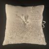 Small, White, Embroidered Ring Pillow.