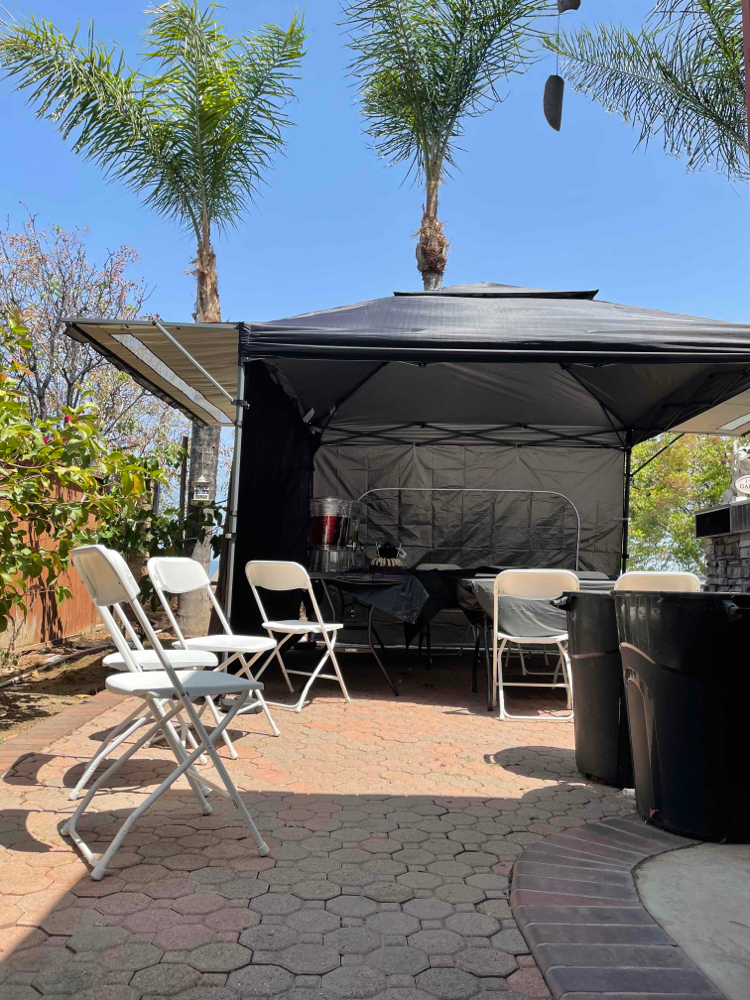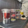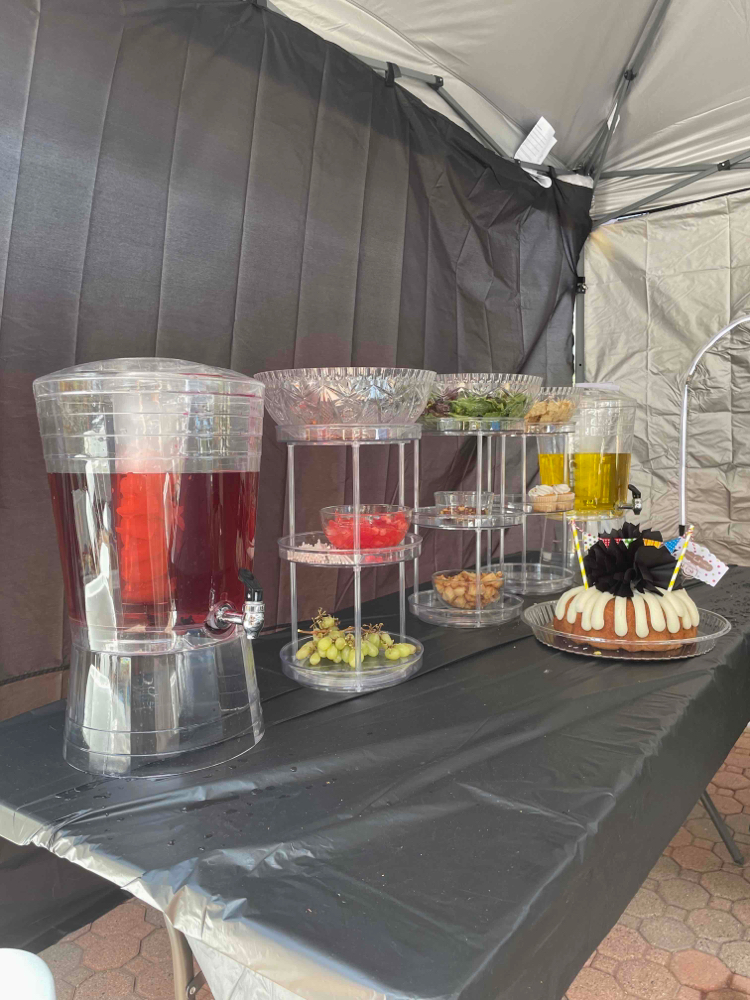 hello renting out black canopy’s and black table and chairs along with Suzy three tier and jugs, power station , and electric cooler