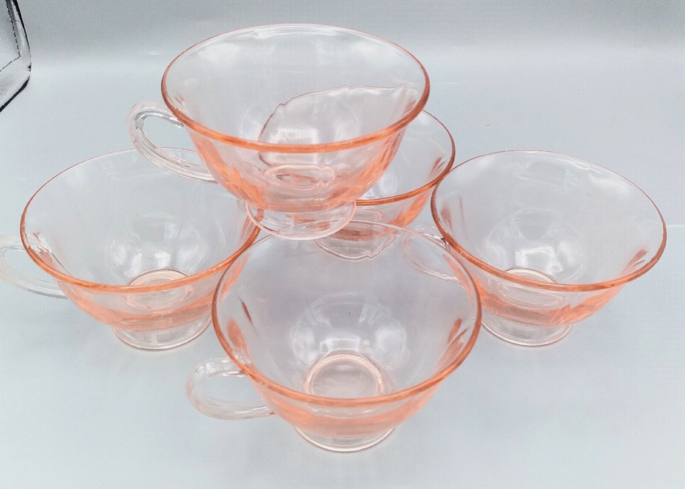 - Fostoria FAIRFAX Depression Glass Peach/Pink Punch Bowl Cups