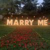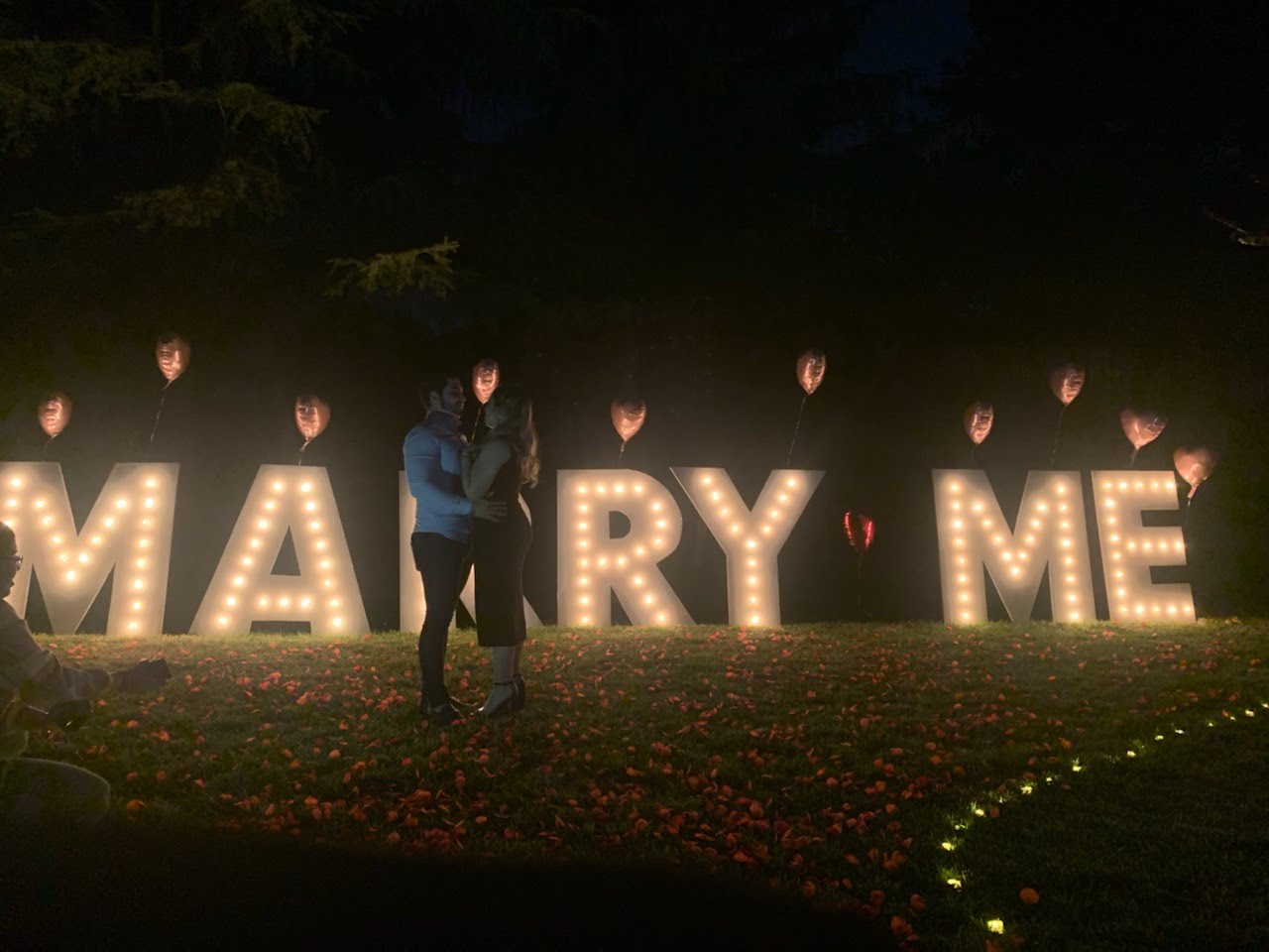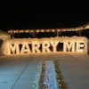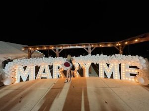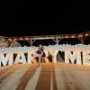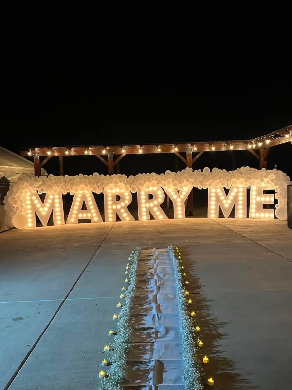 These letters are 4 ft tall and over 30 ft wide and made from wood. They light up 5-watt Edison-style filament rounded bulbs with a total of 142 lights combined. These letters give off a warm and inviting amber glow and can be set up anywhere.