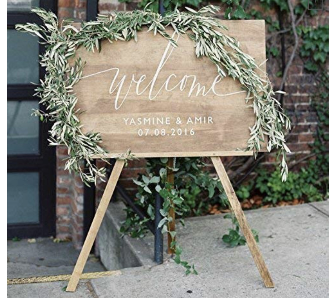 This customizable Oak Wood Sign is a beautiful way to welcome guests to your special day.
