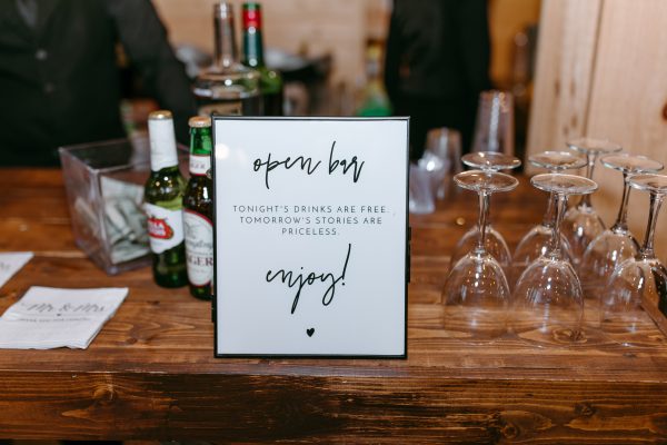 “Open bar. Tonight’s drinks are free. Tomorrow’s stories are priceless. Enjoy!”