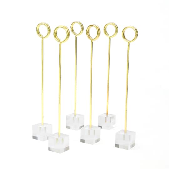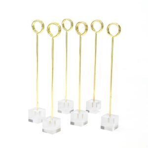 21 gold table number holders with a clear square bottom.