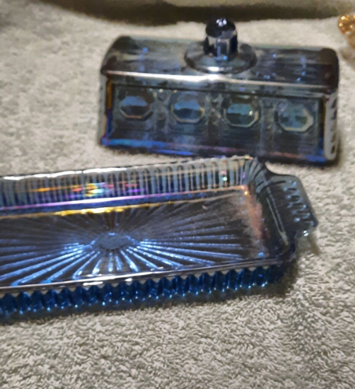 - Indiana Glass Co. Windsor Blue Iridescent Butter Dish $50.00 ea.