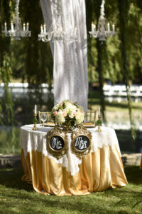 The reception was an absolute dream in itself. We enjoyed the perfect evening surrounded by rich green tones starting from the beautiful linens on the tables to the whispering willow trees above. The setting was absolutely amazing! The willow branches hanging above the reception along with the bistro lights created such a magical and whimsical atmosphere! I just wish I can relive that day!