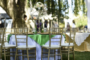 At the time of my wedding, light tones were trending, I however was really inspired by rich colors like emerald green! With much opposition from others, I decided to go with green as my wedding color and I paired it with peach and gold. I personally was very happy with the result! The style I decided to go with was a an ornate vintage look with a lot of lace detail. We also tried to keep a timeliness and classic look.