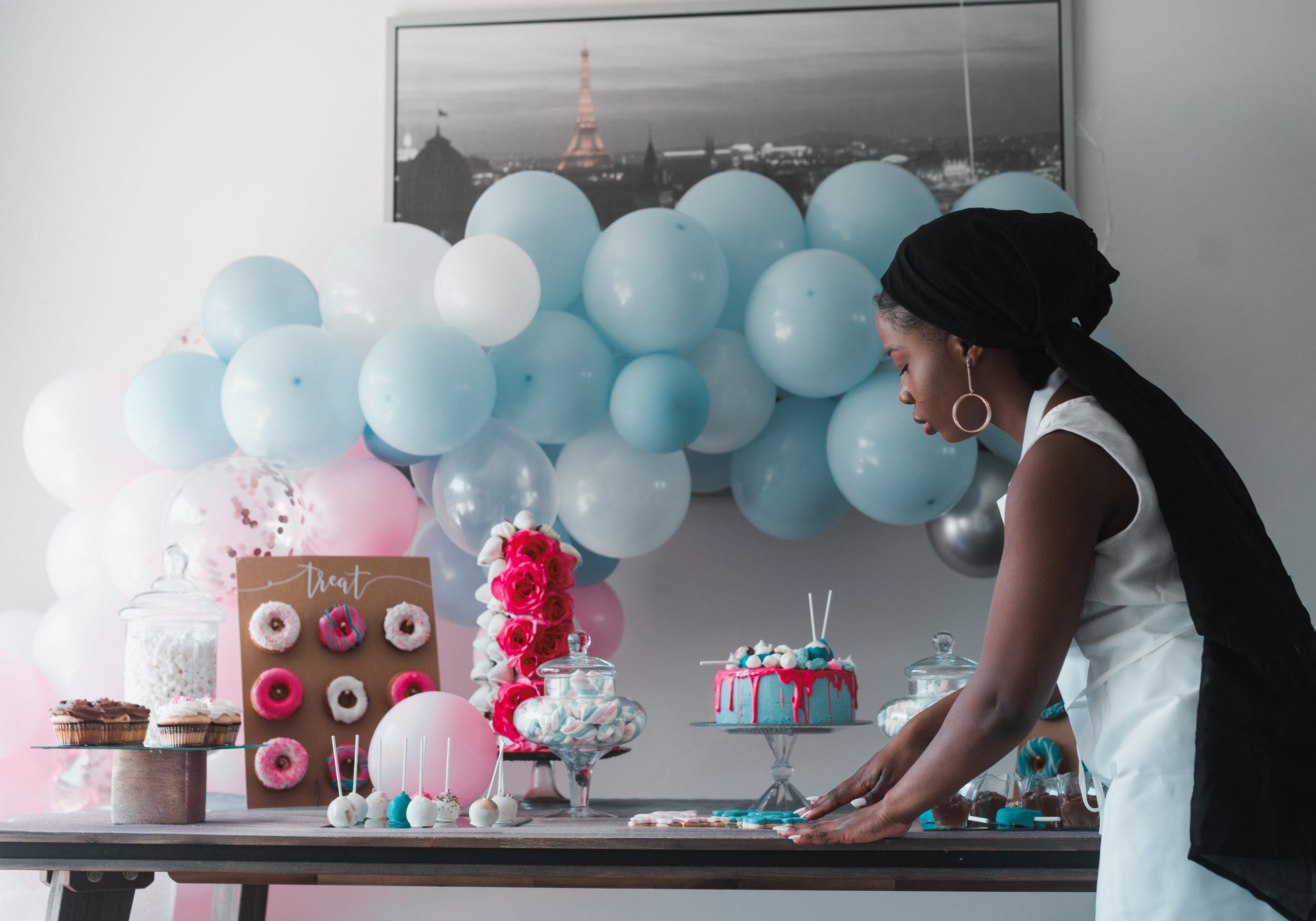 Everyone loves desserts! Whatever color combo you choose for your gender reveal, I’m sure you can find candies and desserts in that color. You can also add whatever color of sprinkles on to white frosted donuts to match the color theme. Some dessert options are cake pops, frosted sugar cookies, and chocolate covered strawberries.
